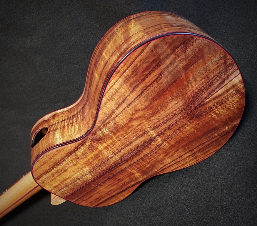 Neck: Honduran Mahogany with Koa/red fiber lamination.