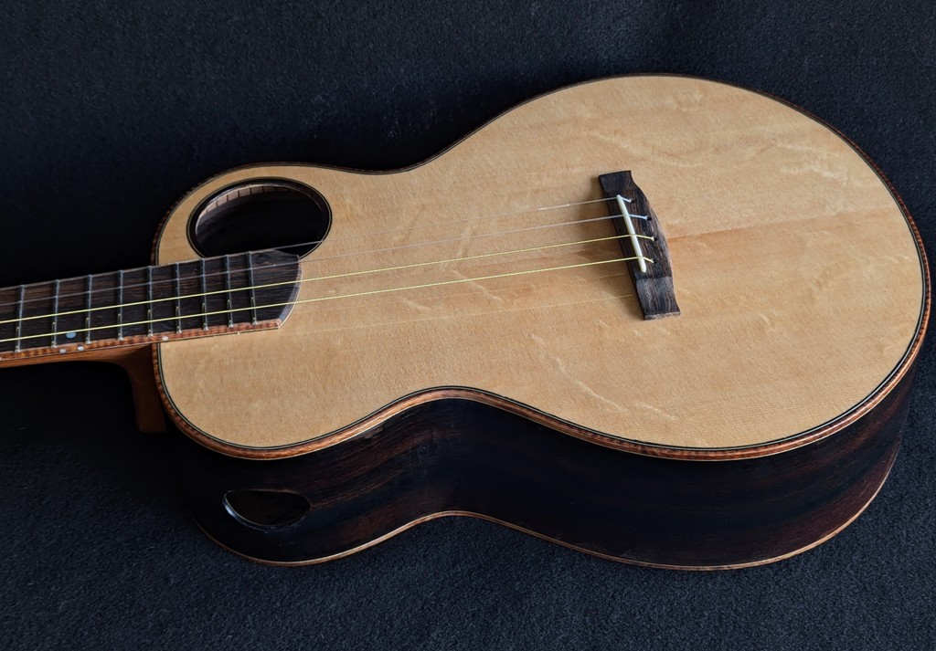 As I already said this is a whole new class of ukulele. Very big and focused. I have another bari here with a koa body and a very low density top to compare with. I much prefer this combination of woods. Maybe a Classic Woods Baritone Ukulele is the way to go with all future baritone builds?