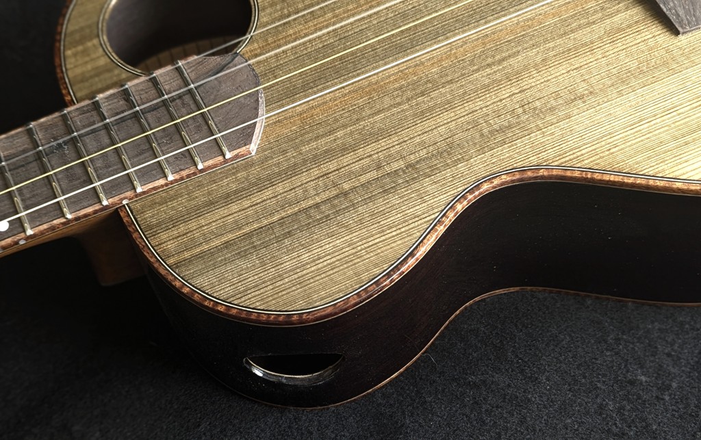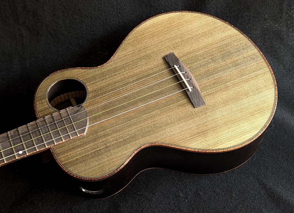 With a more traditional look, here’s A Classic Baritone Ukulele. This is my big baritone shape.