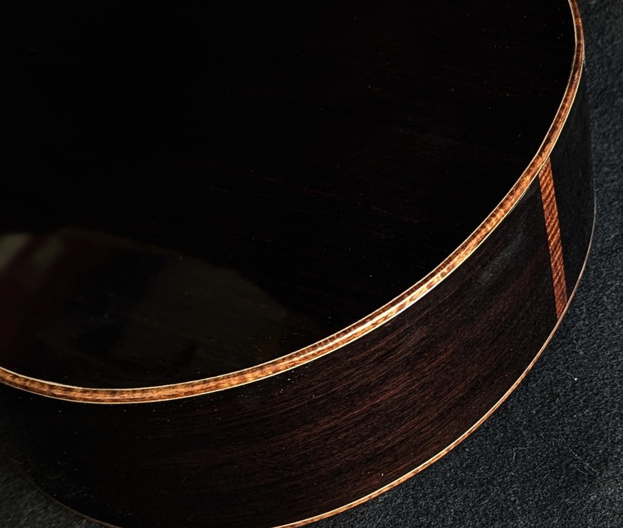 Sound Board: I paired the rosewood with this Dark Forest Cypress sound board. Maybe not traditional but a very distinguished look. Not overly bright with a good balance for the rosewood.
